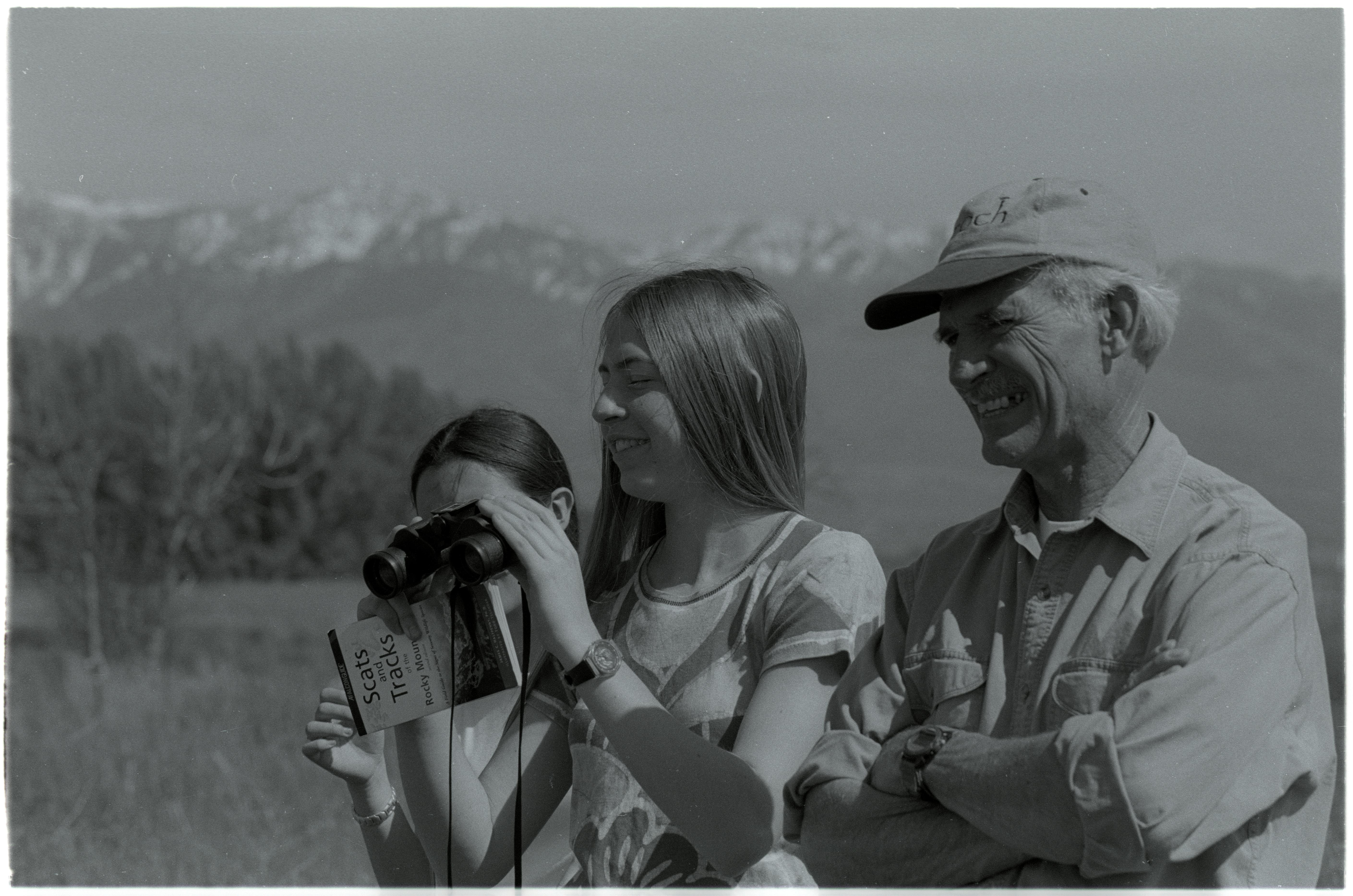 | Description | Negative photo image of Jack Greene and two students in his Environmental Science class, Jenna Forsyth (in patterned shirt) and Erika Neely (white shirt) undertaking a mammal and bird count at an oxbow at Trenton Bridge in Cache Valley, Utah, May 2003. |